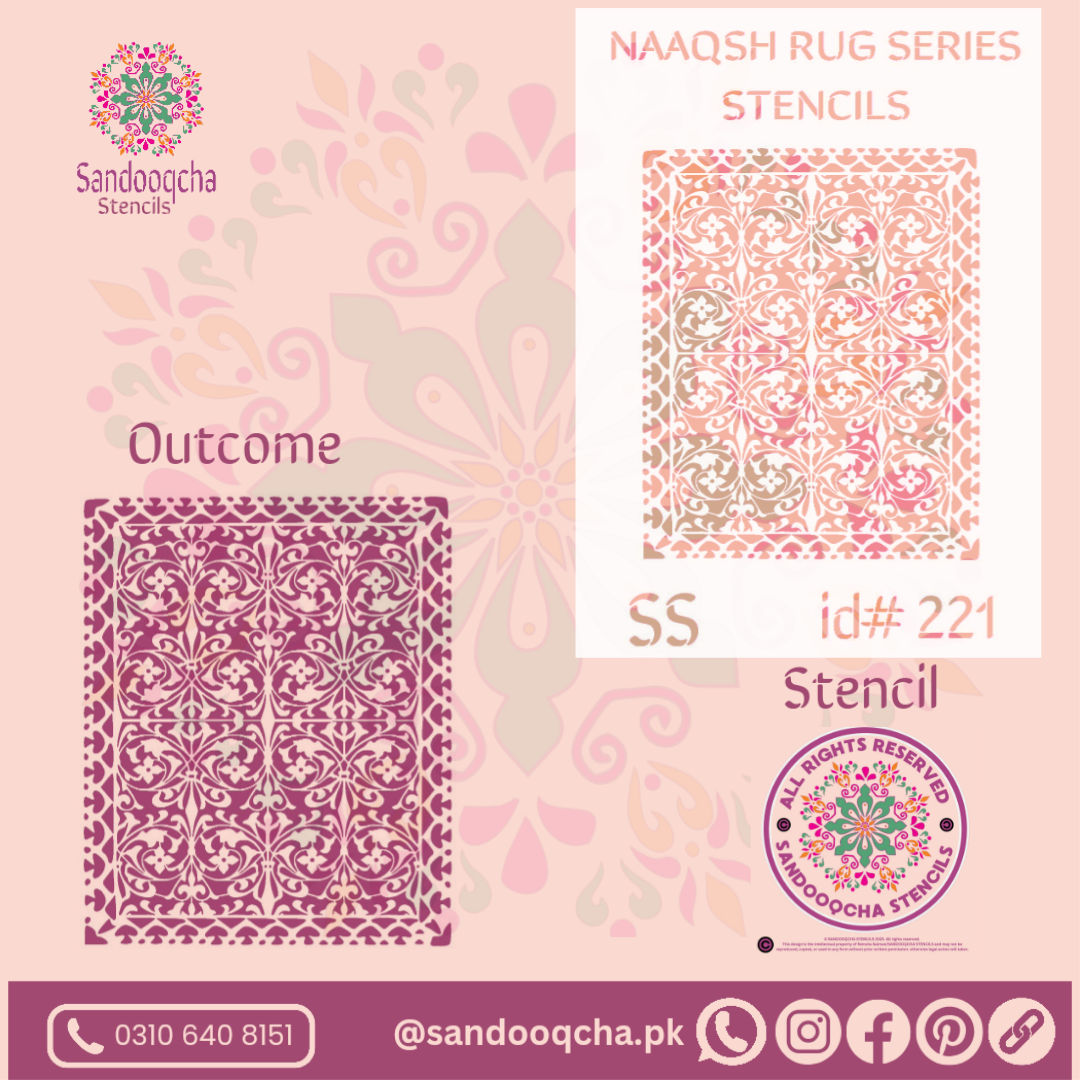 Reusable Iranian carpet-style stencil inspired by traditional Persian patterns. Ideal for rugs, floors, and carpet decoration